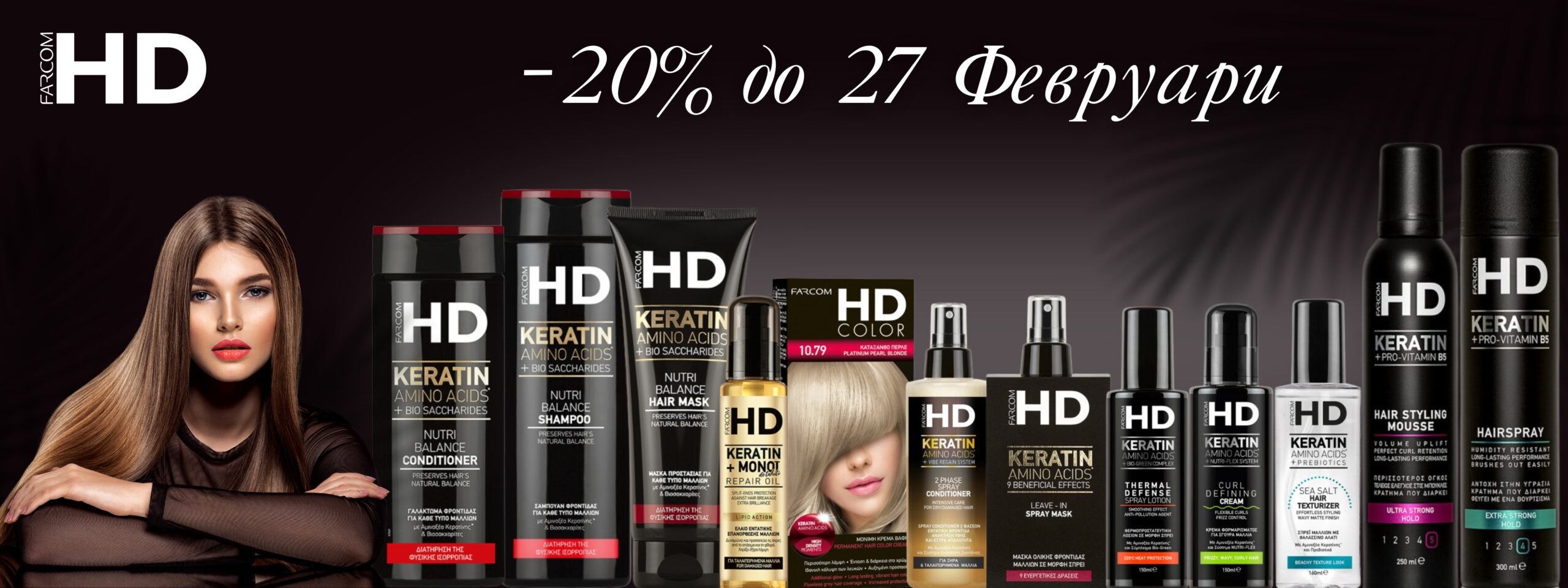 Продукти на водещи брандове като SERI, Expertia, Bioproten, Olencia, ARREN, Arlem, HD, Echo, 555, чиято качествена формула и ефективност са добре познати сред професионалистите и не само. Бои за коса, шампоани, балсами, маски, стилизиращи продукти за коса, както и продукти за тялото: кремове за ръце, масла и лосиони за тяло, душ крем и течни сапуни осигуряват цялостната грижа за косата и кожата.